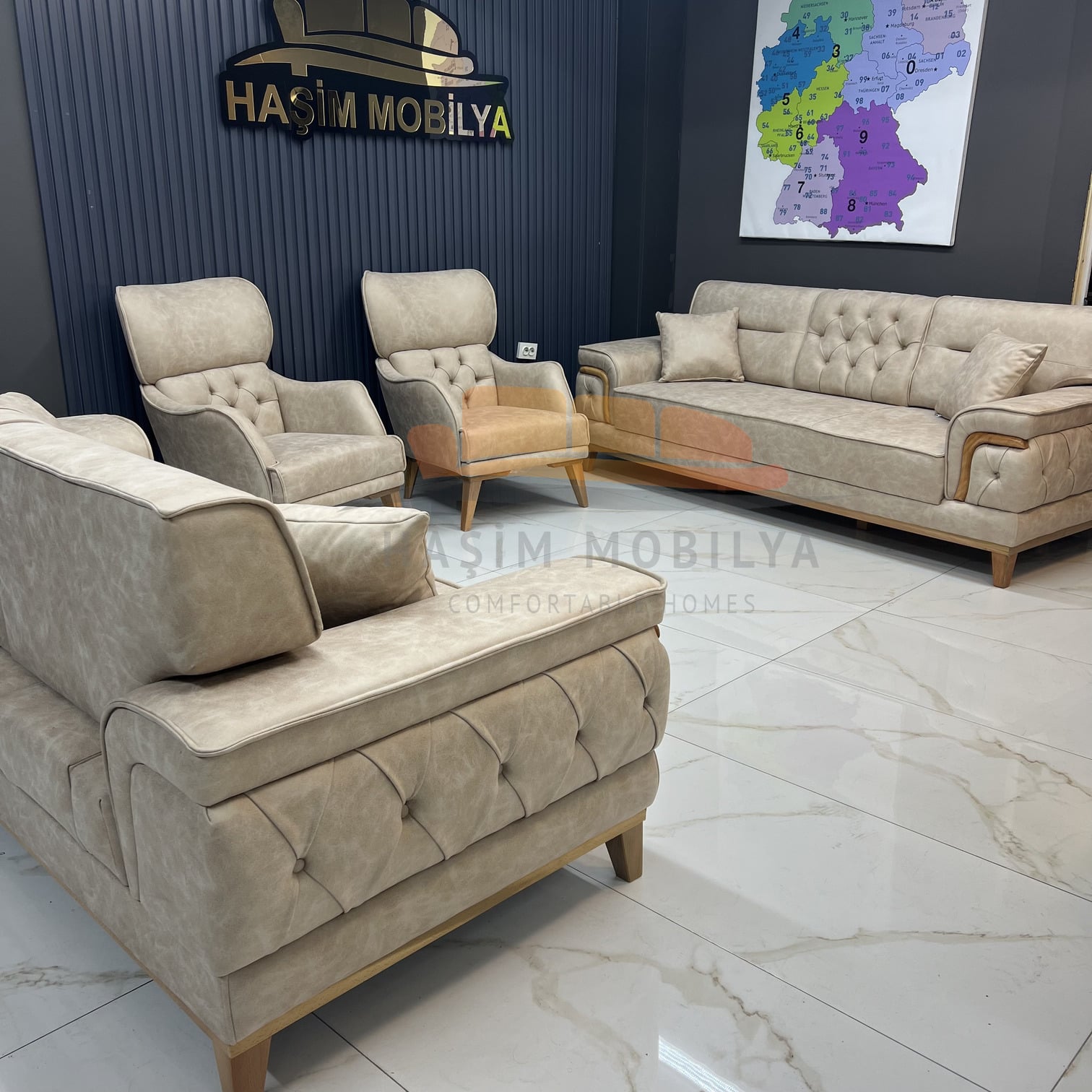 - خشب زان 100% : نحن نستخدم أفضل أنواع الخشب مثل خشب الزان، الذي يضمن لك طاقم كنب متين وصامد على مر السنين.