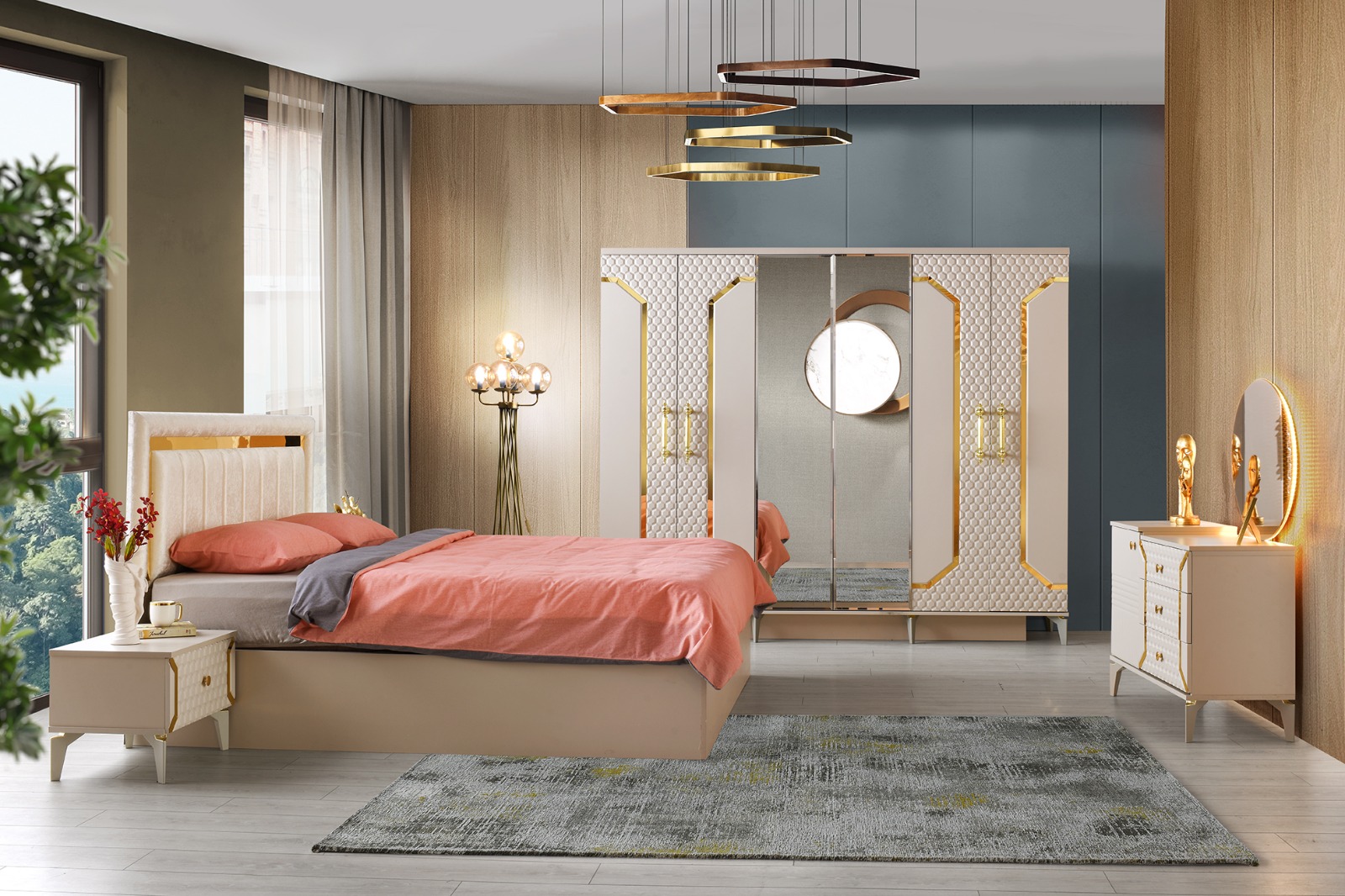 - خزانة 6 أبواب: توفر مساحة تخزين واسعة ومنظمة.